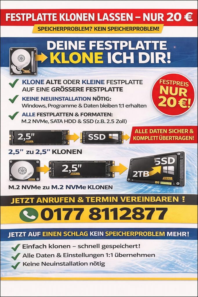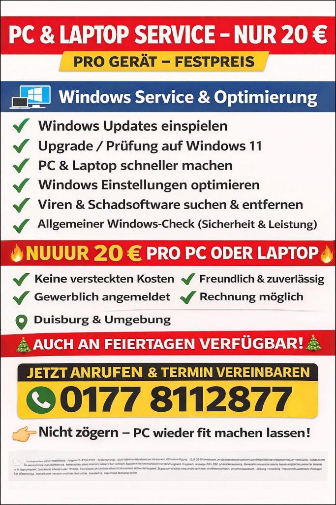 Ich biete zuverlässigen Support rund um Windows, Hardware, Software & Netzwerke – schnell, kompetent und mit über 25 Jahren Erfahrung.